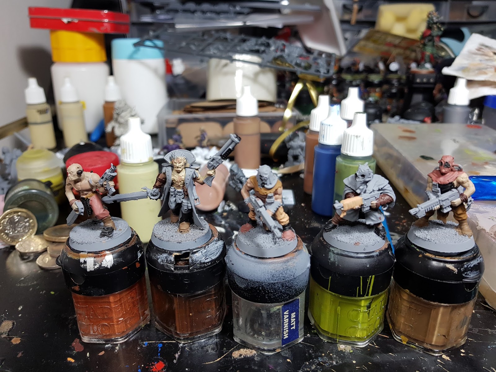 The plan is that these figures are all going to look vaguely like they are in desert gear, with a few exceptions in the colour palette to make them more interesting. My view is that this will work with the ideas I have for their use. My ideas for Titansgrave make me think the world is mostly desert. My post apocalyptic worlds are fairly dusty and definitely not green. The only place where they might be out of play is X-Com but this probably isn't going to be such a big issue.